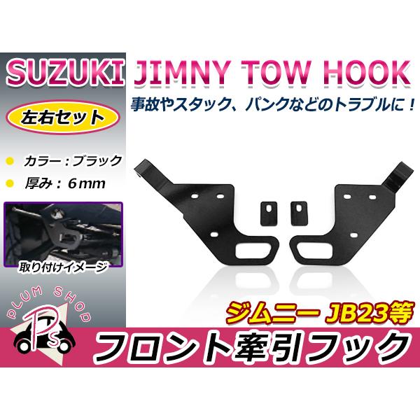 スズキ ジムニー JB23 フロント 牽引フック 左右セット 厚み6mm ブラック 黒 レッド 赤 ステンレス ボルトナット付き