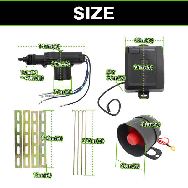 | 【商品詳細】 ・商品について:【キータイプ】 Fタイプ 【取り扱い注意事項】 ※当方では取り付けに関するサポートは致しておりません ※適合車や取付配線データは当方ではお答えが出来ません。 ※消費電力の大きいものや誘導負荷がある、ハードウェアに 影響を及ぼす機器媒体の近くではノイズによって誤作動を起こしたり、 正しく動作しない場合がございますので、必ずご確認ください。 ※純正集中ドアロック無し、純正集中ドアロック有りとワイヤー式ドアロックでは、 手順や取付方法が異なります。 【アクチュエーターの駆動について】 ロックボタンを押すと内側に縮み、アンロックボタンを押すと 外側に押し出される仕様となっております 取付け方によっては逆作動になるかもしれませんが、取付ける方向は車によって変わります もし、駆動部分を上向きに使うしか出来ない場合は、逆作動でしか使用できない事になります 汎用品につき、ご容赦くださいませ。 ・参考車種:セダン スポーツ SUV クロスカントリー ステーションワゴン ミニバン コンパクトカー 2BOX トールワゴン 商用車 軽自動車 乗用車 トヨタ TOYOTA ニッサン 日産 NISSAN ホンダ HONDA 三菱 MITSUBISHI マツダ MAZDA スバル SUBARU いすゞ いすず ISUZU スズキ SUZUKI ダイハツ DAIHATSU ディーラー 新車 中古車 メーカー製 社外製 社外品 純正 117クーペ AD MAX AD エキスパート AZ ワゴン AZ-1 AZ-3 Be-1 CR-X デルソル CR-Z D5 eKクラッシィ GTO HR-V iQ MR2 MR-S MRスパイダー MRワゴン MS-6 MS-8 MS-9 N360 NSX PA ネロ R1 R2 RVR RX-7 RX-8 S2000 SMX SX4 TN360 WiLL Vi WiLL VS WiLL サイファ X-90 YRV アウトバック アウトランダー アクシオ アクセラ アクティ アクティ ストリート アクティ トラック アコード クーペ アコード ワゴン アスカ アスコット アスコット イノーバ アスパイア アテンザ スポーツ アトラス アトレー バン アトレー ワゴン アバロン アプローズ アベニール サリュー アベンシス アベンシス ワゴン アリスト アルシオーネ SVX アルティス アルテッツァ アルテッツァジータ アルト アルファード ハイブリット アレックス イスト インスパイア インテグラ SJ インフィニティ Q45 インプレッサ WRX インプレッサ アネシス ヴィヴィオ ウィザード ウィッシュ ヴィッツ ウイングロード ウィンダム ヴォクシー ヴォルツ エアウェイブ エアロバス エクサ エクストレイル エクリプス エスカルゴ エスクード エスティマ ハイブリッド エテルナ エブリィ プラス エメロード エリオ セダン エリシオン エルフ エレメント オースター オーパ オーリス オデッセイ オプティ オリジン ガゼール カプチーノ カペラ カーゴ カムリ グラシア ワゴン カムロード カリーナ バン カリーナED カルタス クレセント カルディナ カレン カローラ II キザシ キックス キャパ キャミ キャラバン バス ギャラン フォルティス キャリイ トラック キャンター ガッツ キューブ キュービック クイックデリバリー クー クーペ クオリス クラウン エステート グランビア クリッパー バン クルー クルーガーハイブリッド グレート クレスタ クレフ クロスオーバー クロスロード クロノス グロリア ワゴン コースター コスモ コペン コモ コルサ コルト プラス コロナ エクシヴ コンチェルト コンドル コンフォート サイノス サクシード バン サクシード ワゴン サニー カリフォルニア サンタナ サンバー トラック ジープ シーマ ジェミニ ジェミネットII シエロ シティ シビック GX シビリアン ジムニー シエラ ジャーニー ジャズ シャトル シャリオ シャリオ グランディス シャレード ジューク ジュニア スイフト スイフトスポーツ スーパーグレート スープラ スカイライン GTR GT-R スクラム ワゴン スターレット スタンザ ステージア ステップワゴン ステラ ストーリア ストラーダ ストリーム スパーキー スパシオ スピアーノ スプラッシュ スプリンター カリブ スペースギア スポーツワゴン ゼスト スパーク セダン セドリック ワゴン セフィーロ ワゴン セプター セラ セリカ XX セルボ セレナ カーゴ センチュリー ソアラ ソニカ ソリオ ターセル タイタン タイタン ダッシュ タウンエース トラック タウンボックス ワイド ダットサン トラック タント エグゼ チェイサー チェリー ツイン ツーリング ハイエース ツーリングワゴン ディアス ワゴン ディアマンテ ワゴン ティーダ ラティオ ティーノ ディオン ディンゴ デックス デボネア V デミオ デュアリス デュエット テラノ レグラス テリオス キッド デリカ スターワゴン デルタ ワイド ワゴン トゥデイ トッポ BJ ドマーニ ドミンゴ トヨエース トヨタ クラシック トライトン トラヴィック トラック トルネオ トレノ ナディア ニッサン ダンプ ネイキッド ノア ノート パークウェイ ハイエース コミューター パイザー ハイゼット カーゴ ハイパーミニ ハイブリッド ハイラックス スポーツピック バサラ パジェロ パッソ パッソ セッテ バネット トラック パブリカ バモス ホビオ ハリアーハイブリッ