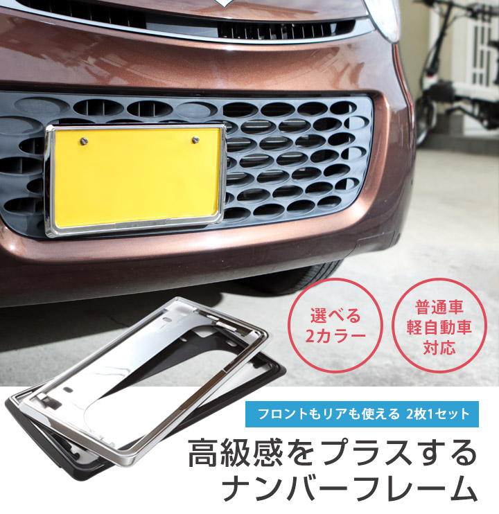 ナンバーフレーム 2個セット 前後用 【 ジムニーノマド 実車取付確認済み】 軽自動車 普通車対応 汎用 外装パーツ メッキ ブラック グレー シンプル カスタム