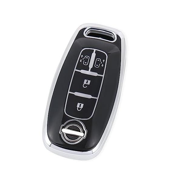 YANMW 新型セレナ キーケース 適合日産 セレナ C28系キーカバー 両側スライドドア(シルバーエッジブラック)