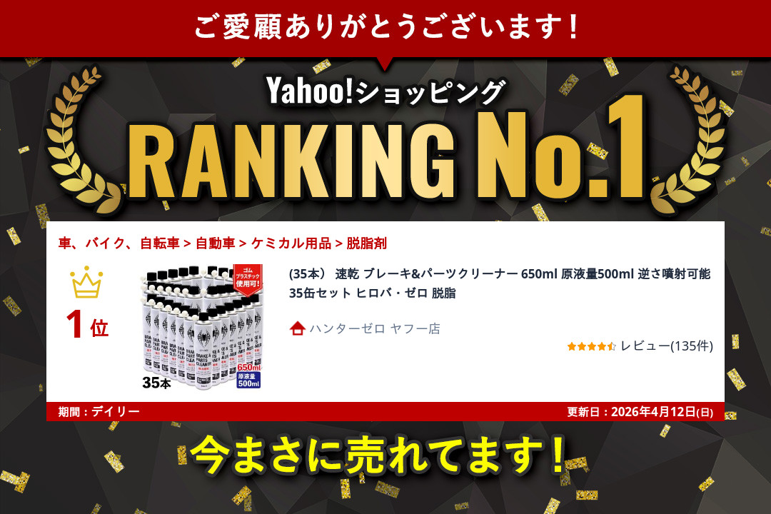 (35本) 速乾 ブレーキ&パーツクリーナー 650ml 原液量500ml 逆さ噴射可能 35缶セット ヒロバ・ゼロ 脱脂