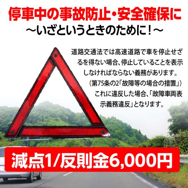 後続車からの追突事故を未然に防ぐ、視認性の良い三角反射板です。