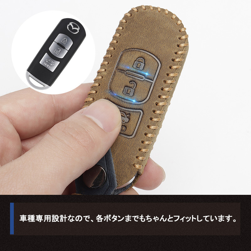 新型 ボタン マツダ3 mazda3 セダン&CX-5 専用 本革 キーケース ブラウン ブルー 2色選択 車種専用設計 レザー キーカバー