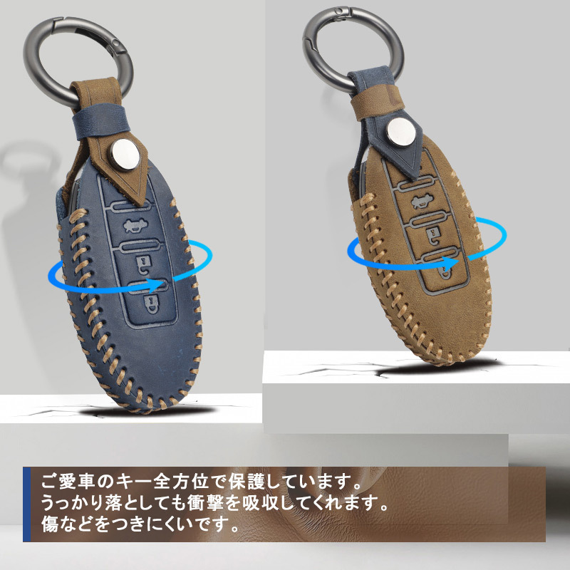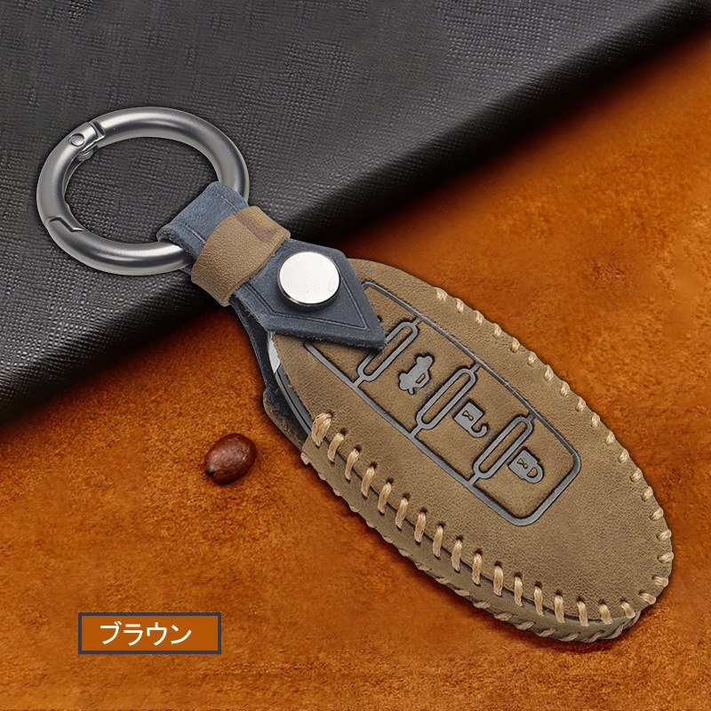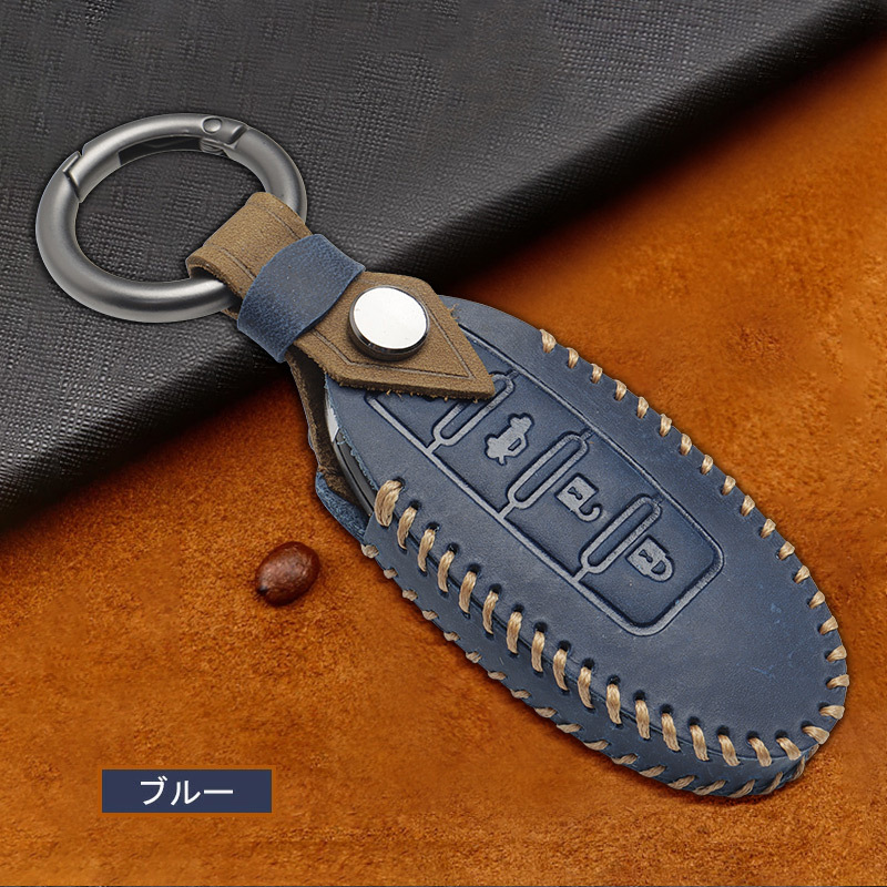ボタン 日産車用 セレナ エルグランド スカイライン 本革 キーケース ブラウン ブルー 2色選択 車種専用設計 レザー キーカバー