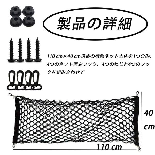 | 商品名 | HUIKKJP 車用トランクカーゴネット 110cm×40cm(ブラック):2 層ネットポケット 伸縮性強い 荷物固定・落下防止 取り付け簡単 強力フック付 汎用ラゲッジネット 軽自動車/SUV 等対応 |
