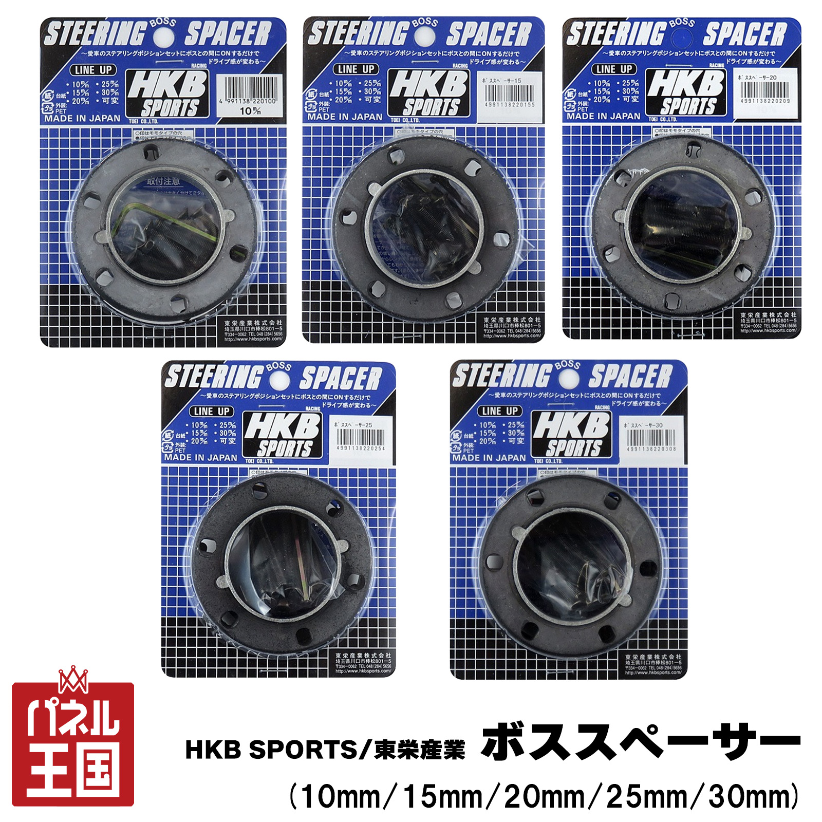 HKB SPORTS/東栄産業 ボススペーサー 10mm/15mm/20mm/25mm/30mm ステアリングスペーサー ステアリングボス/ハンドルボス用 ポジション調整に cg-hkb-hkbs