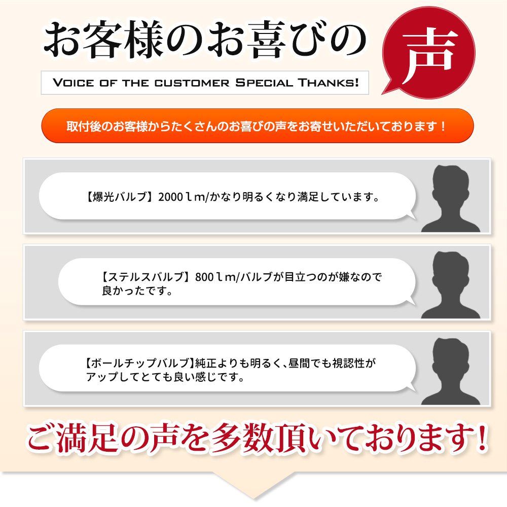 | ボールチップバルブ:1500LM 爆光バルブ:2000LM ステルスバルブ:800LM |