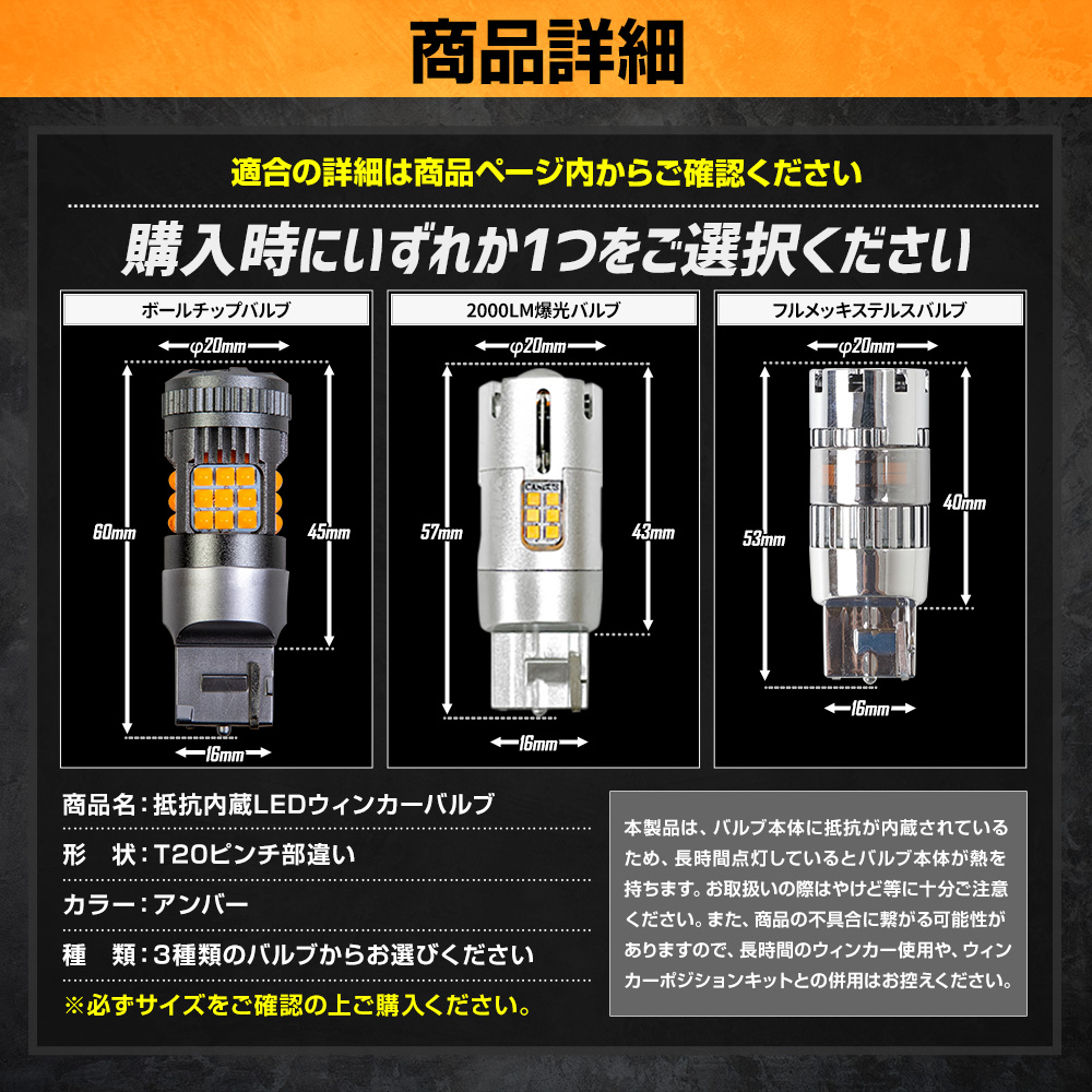 ルークス BB系 適合 ウインカー 抵抗内蔵 2個/1set ボールチップバルブ/ステルスバルブ/2000LM ウィンカー ROOX NISSAN 日産 [2]