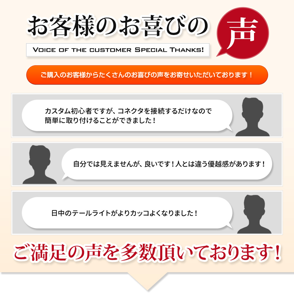 本製品は他車からの認識性の向上だけではなく、純正デザインを崩すことなく他車に差をつけることだできるワンランク上のドレスアップアイテムです!