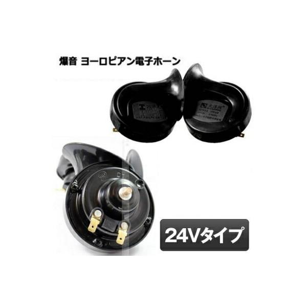 ホーン クラクション 爆音 ヨーロピアン 24V 電子ホーン 快音 ホーン 車 トラック 貨物 軽トラ ブラック