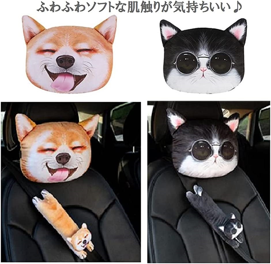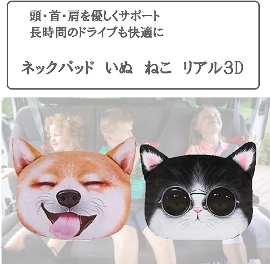 [pkpohs]ネックパッドヘッドレストいぬねこ3D車首クッションぬいぐるみ