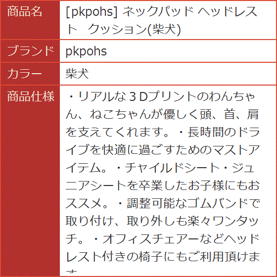 | 商品名 | ネックパッド ヘッドレスト クッション 柴犬 |