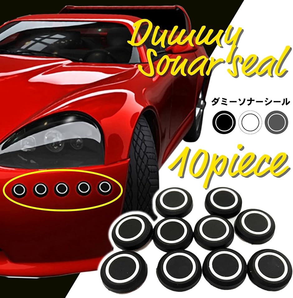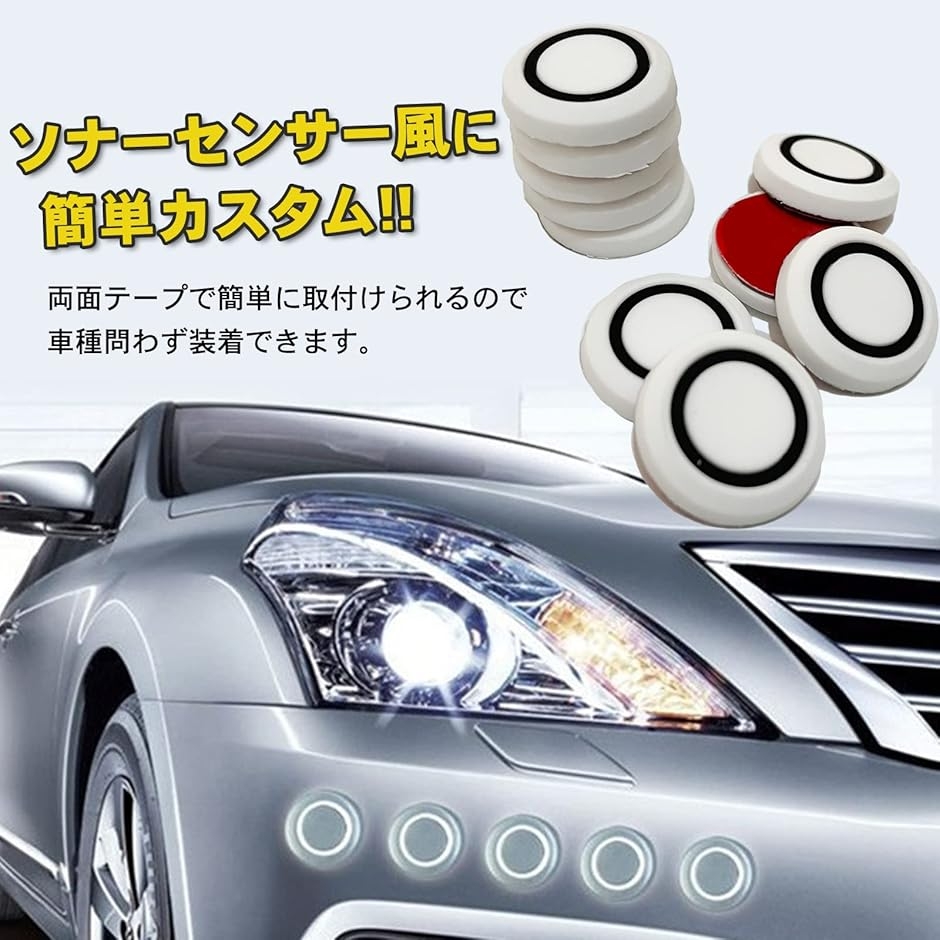 ダミー ソナー シールは、コーナーセンサー風のカスタマイズを手軽に楽しめるだけでなく、車両の傷隠しや飛び石対策としても役立つ便利なアクセサリーです。