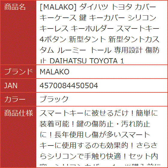 | 商品名 | ダイハツ トヨタ カバー キーケース 鍵 キーカバー シリコン キーレス キーホルダー スマートキー 4ボタン 新型タント 新型タントカスタム ルーミー トール 専用設計 傷防止 DAIHATSU TOYOTA 1 |