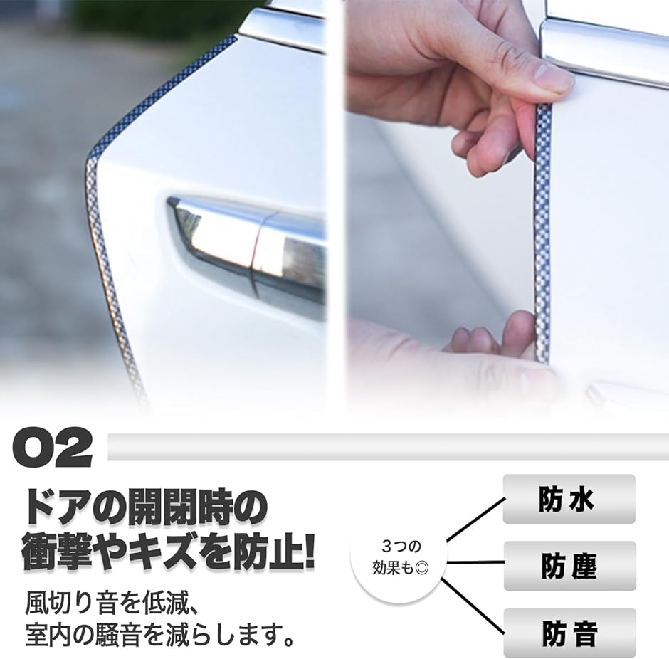 ドア開閉時の衝撃やキズを防止。車用ドアモールガード。防水・防塵・防音にも。人気のカーボン柄デザインがスタイリッシュに愛車をグレードアップしてくれます。
