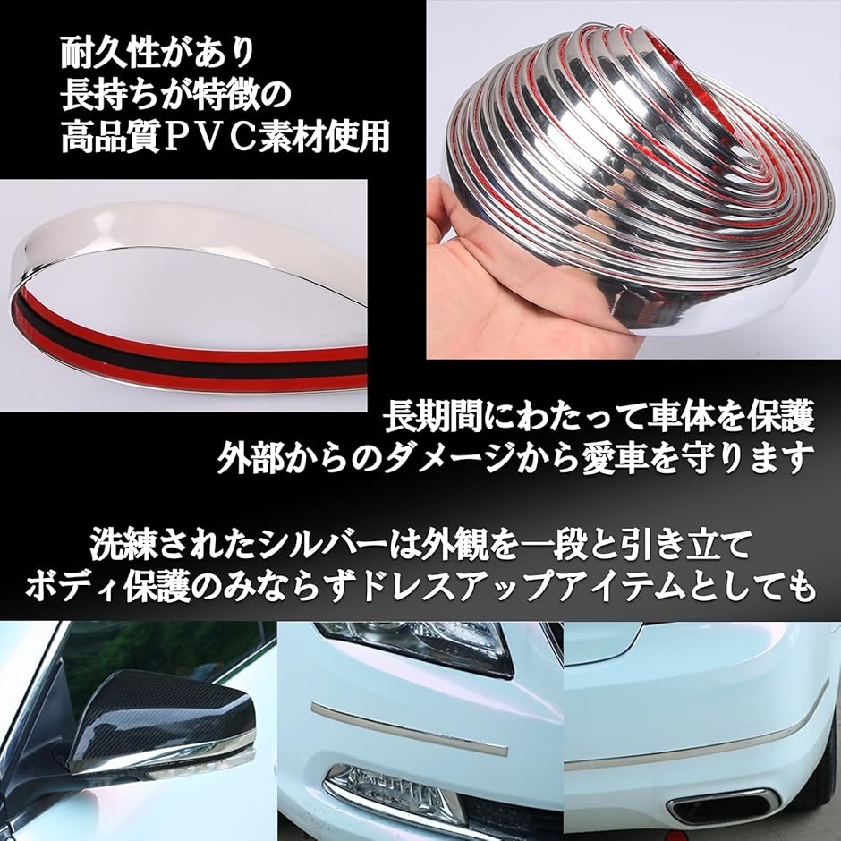| 商品名 | 互換品メッキモール メッキテープ マルチモール ボディ バンパー 汎用 プロテクター PVC製 ドレスアップ 保護用 |