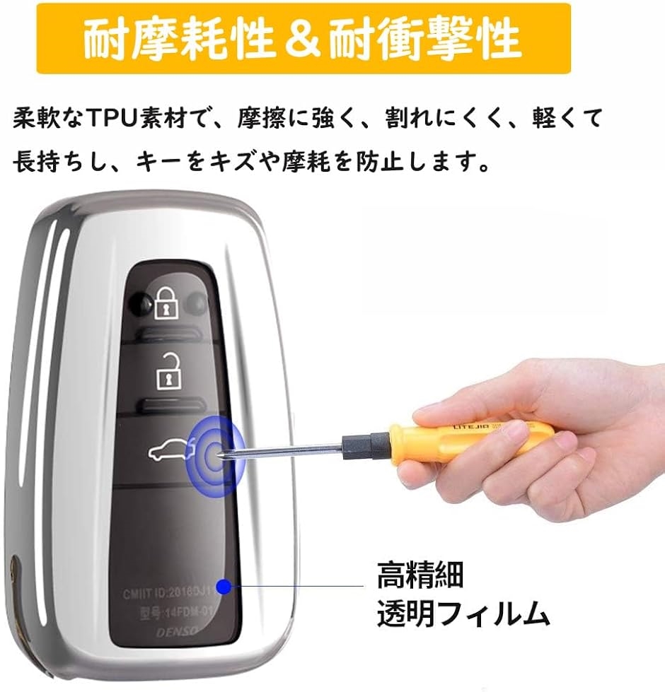 スマートキーケース TPU製 トヨタ用 TOYOTA適用 C-HR プリウス 50系 新型 カローラ(シルバー, Free Size)