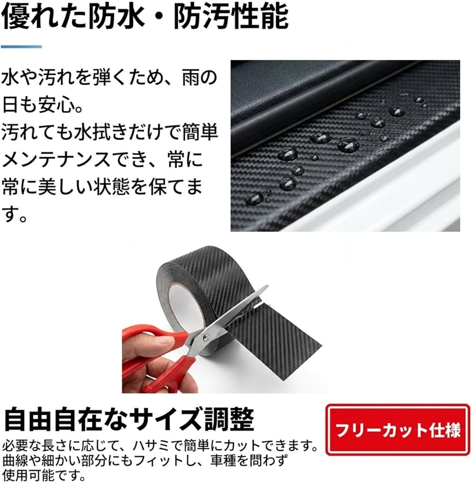 「愛車を守る安心感」車のドアやトランクを開ける際、周囲の物との接触やドライブ中の衝撃で愛車に傷がつくことはありませんか?このプロテクションフィルムを貼ることで、擦り傷から愛車をしっかりと守り、長く美しい状態を保つことができます。