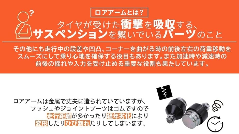 ロアアームとはタイヤが受けた衝撃を吸収する、サスペンションを繋いでいるパーツです。