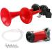 エアーホーン 12v 2連 ホーン 車 ヤンキーホーン クラクション エアホーン クラクション レッド ラッパ 爆音 コンプレッサー ミュージックホーン