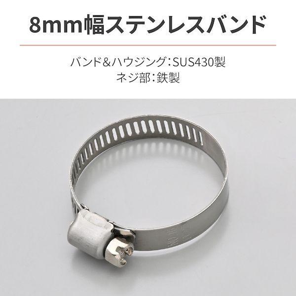 【商品説明】<BR>8mm幅ステンレスバンド。外径φ21ーφ38に対応。<BR>ウォームギア式ホースクランプ。<BR>材質:バンド&ハウジング SUS430製、ネジ部 鉄製<BR>サイズ:バンド幅 8mm、 直線長 約142mm、板厚 0.6mm<BR>貫通スリット範囲長:約65mm(33穴)<BR>六角ソケットサイズ1/4インチ(プラスまたはマイナスドライバー使用可)<BR><BR>●ステンレス製ホースバンド<BR>●外径φ21ーφ38に対応<BR>●ウォームギア式ホースクランプ<BR>●サイズ:バンド幅 8mm、 直線長 約142mm、板厚 0.6mm<BR>●10個入<BR><BR>
