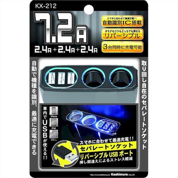 あさってつく対応 直送 代引不可・他メーカー同梱不可 カシムラ KX-212 2連セパレートソケット3USB7.2A KX212