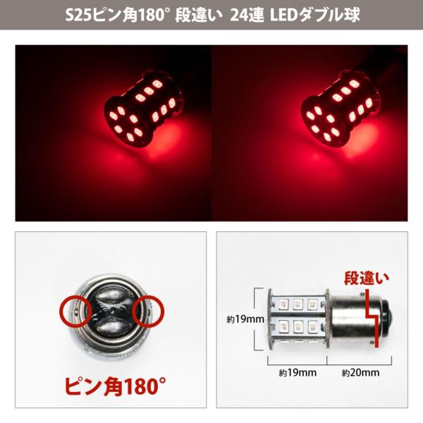 12V 24連 S25 ダブル LED 球 ★赤 レッド ブレーキ テールランプ BAY15d 1157 ピン角 180度 段違い