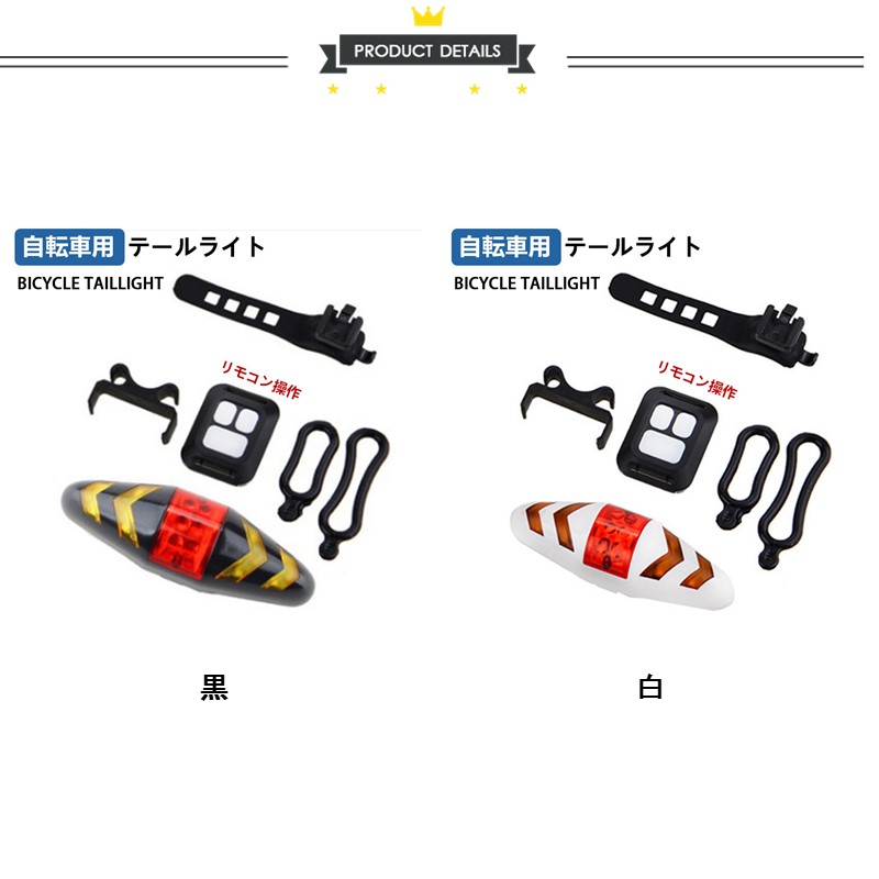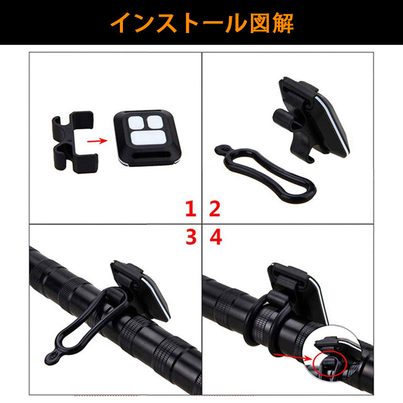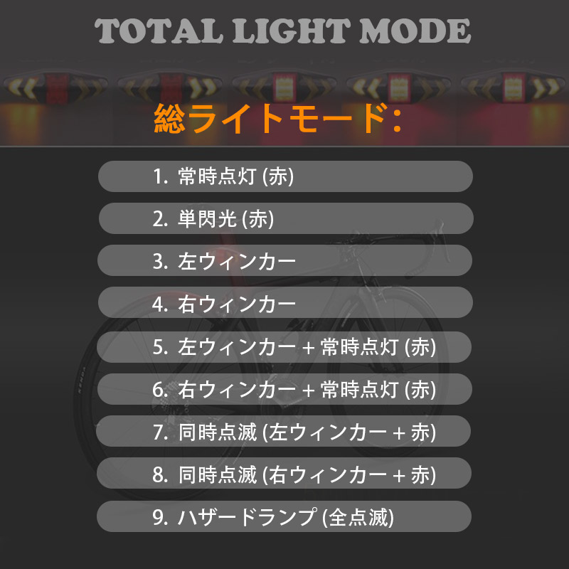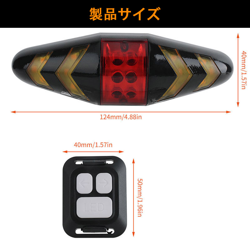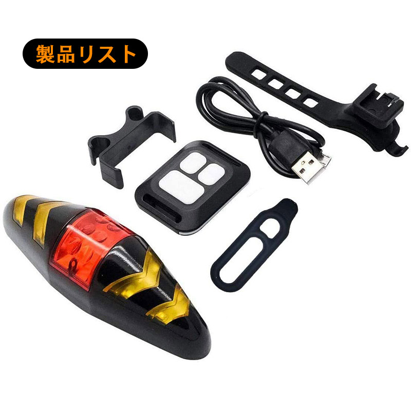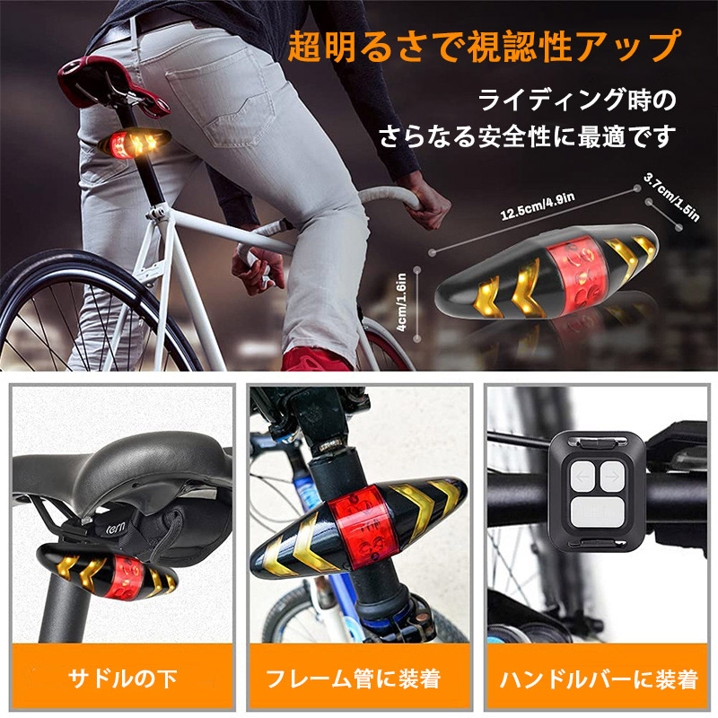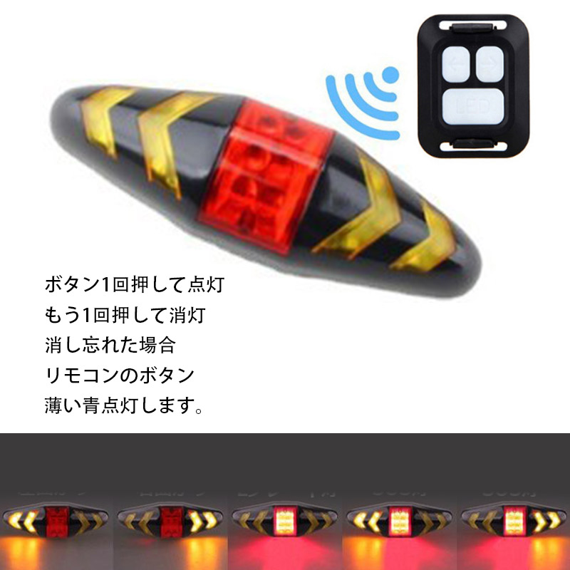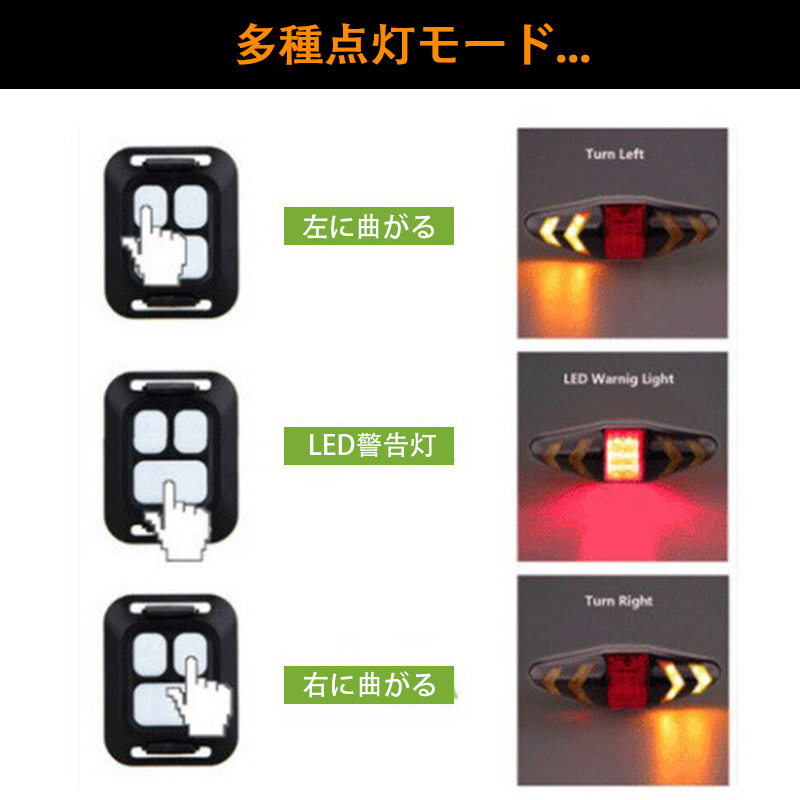 自転車用テールライト リモコン操作 USB充電式 左折右折ウインカー ブレーキ SOS警告灯 事故防止 LEDウインカーライト ワイヤレスウインカー 防水仕様