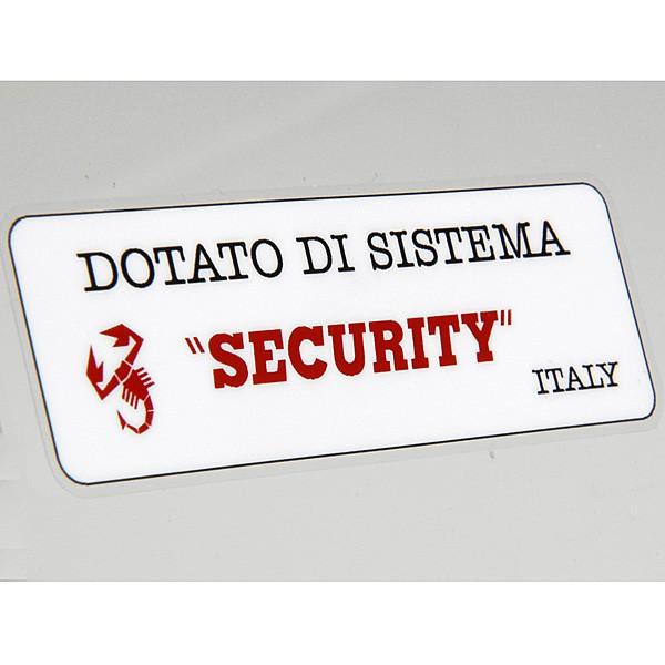 ABARTHセキュリティステッカー、イタリア語版です。「DOTATO DI SISTEMA SECURITY」とは「セキュリティシステム装備」という意味です。