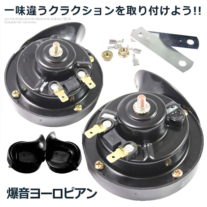 2個セット 爆音 ヨーロピアン 24Vタイプ 電子ホーン 快音 クラクション 24V ブラック ハーモニー 音色 ブラック アウトドア用品 カー用品 HORN02-24