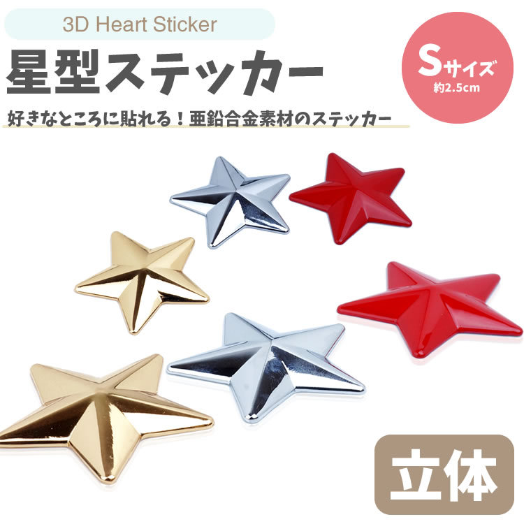 星型 ステッカー 亜鉛合金 カーステッカー シール 約2.5cm3D 車 バイク 小物 雑貨 カー用品 スター 星