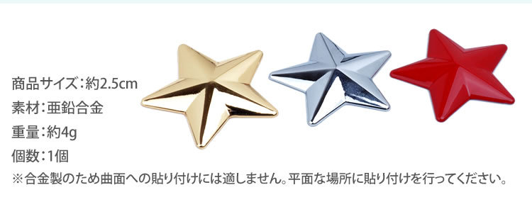 星型亜鉛合金素材の立体ステッカー
