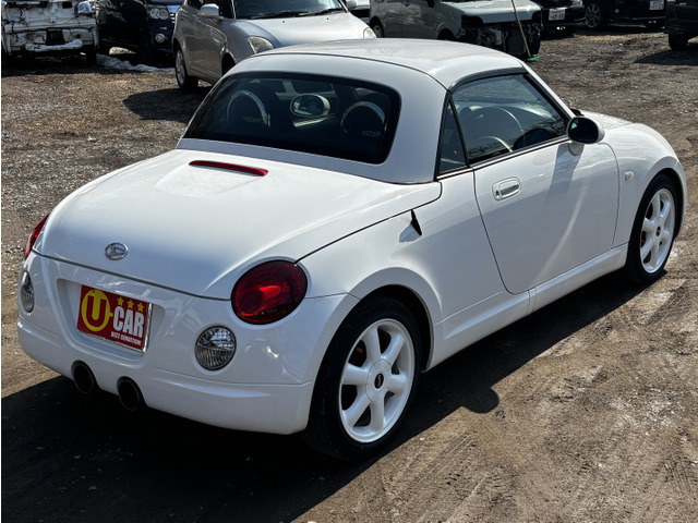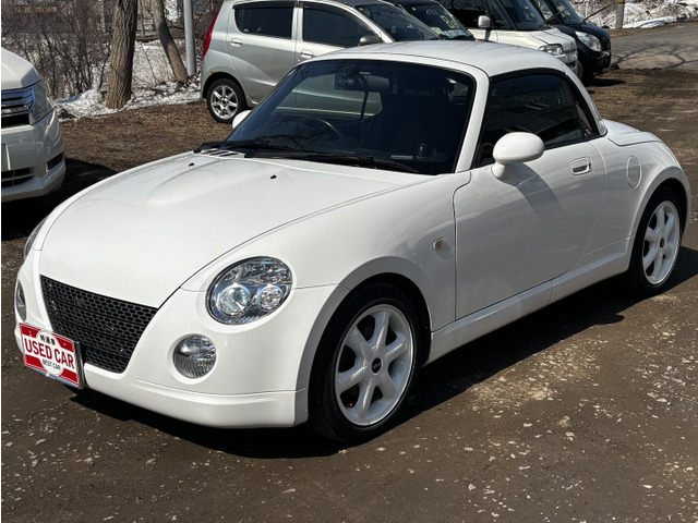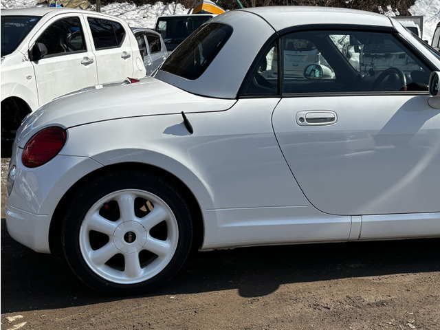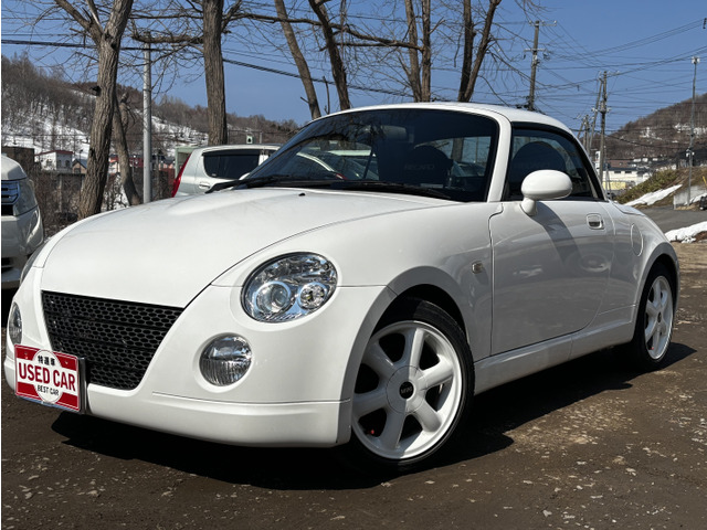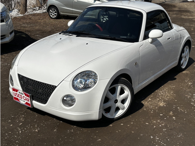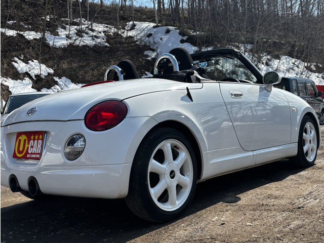 ダイハツ コペンをご検討中のあなたへ。平成17年式のオープンカーであるこの1台は、セカンドアニバーサリー仕様として、特別なレカロシートを装備し、ミニのホイールでスタイリッシュに。たばこ臭なしで、内装も快適です。走行距離140,000kmを感じさせないきれいな下回りもポイント。