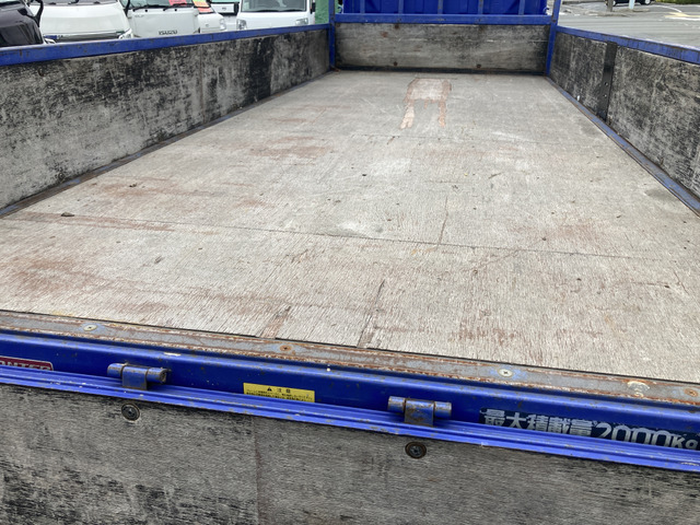 平成22年式、走行21.3万kmの三菱ふそうキャンター2tロング平ボディ2t標準ロング平ボディー ディーゼルターボ オートマ ウッドパネル 左電動格納ミラー かるがるゲート