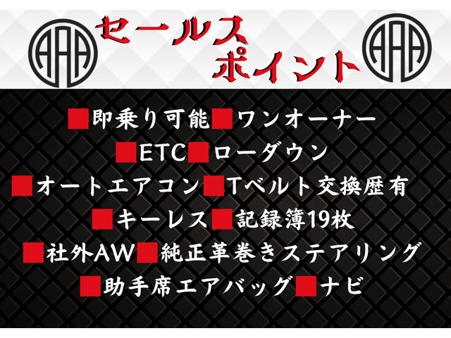 パワーステアリング/パワーウインドウ/ナビ/ETC/エアコン/ABS/エアバッグ/横滑り防止装置/集中ドアロック/盗難防止装置/キーレス