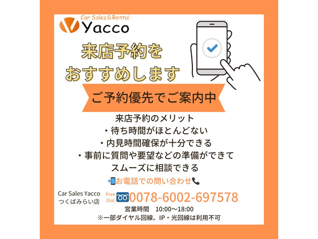 店頭商談中・売約済の場合もありますので、ご来店の際は事前にお問合せ頂き、該当車両の有無をご確認ください。