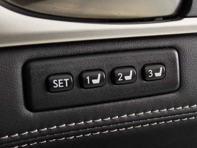 高級感のある黒本革シートとドアについているボタンを押すことで自分の好きな体制を設定することができる機能となっております!一度登録しておくことで書き換えない限り何度でも一番いい姿勢を再現できるとても便利な機能です!