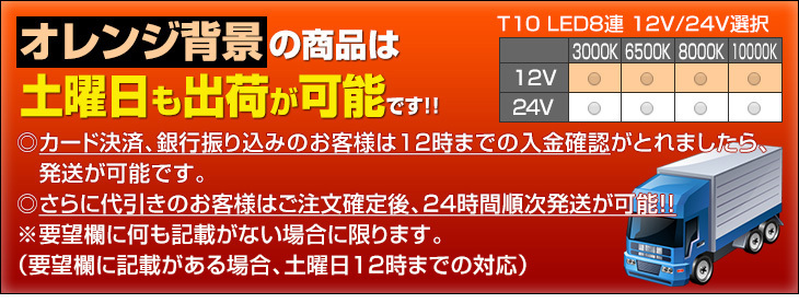 【売り切れ次第終了】 T10 LED 3000K 6500K 8000K 10000K 8連 SMD 12V/24V選択 2個SET ポジション球に メール便 clearance