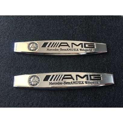 送料無料 001★メルセデスベンツ AMG用★2枚セット カーステッカー シルバー エンブレム プレート 金属製 フェンダーバッジ シール 強粘着力