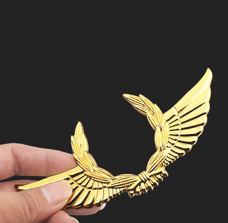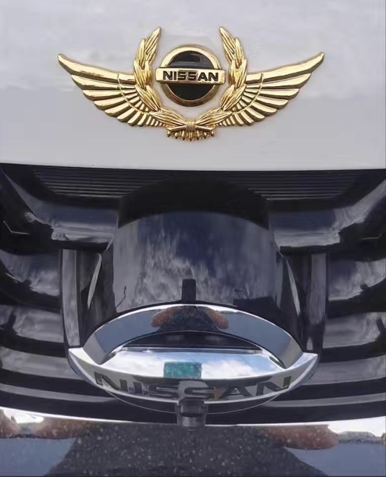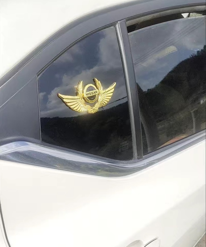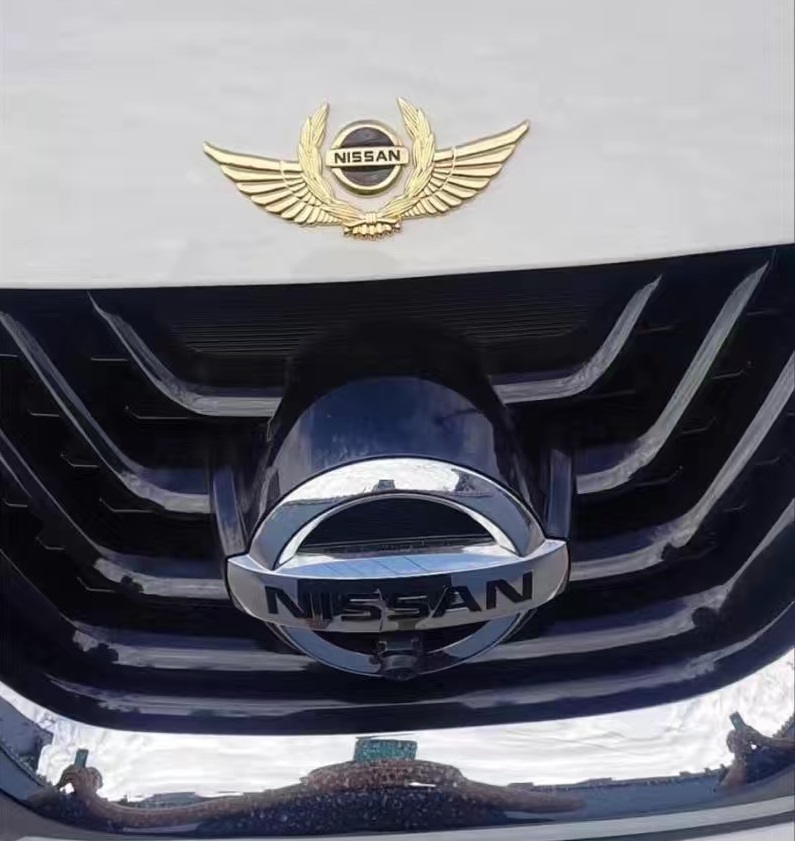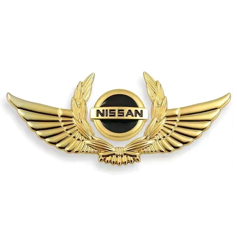 ◆日産 NISSAN◆ステッカー エンブレム カバー 車ロゴ 自動車 かんたん粘着 強力粘着 キズ隠し ゴールド パーツ 3D翼型 金属製 aaah qtm