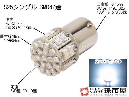LED S25シングル SMD47連-白/ホワイト バックランプ g18 LED ba15s バルブ BA15s 孫市屋