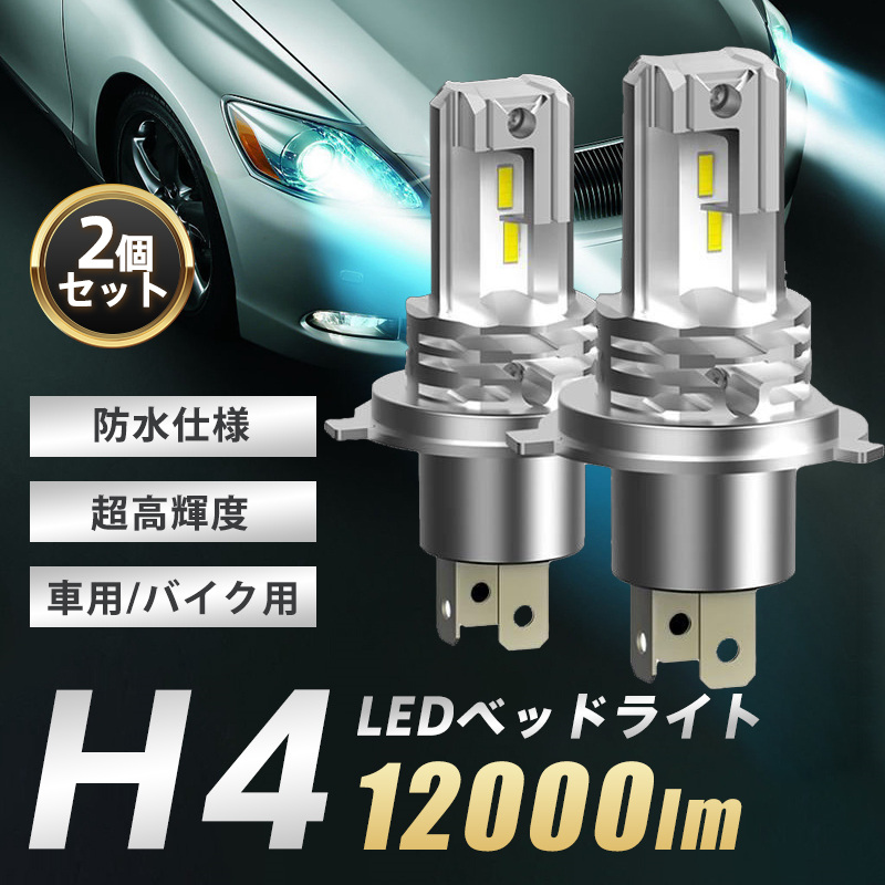 H4 LEDバルブ LED ヘッドライト 2個入 Hi/Lo切替 フォグランプ 超高輝度 車用 バイク用 6500K 12000lm 一体型 車検対応 爆買