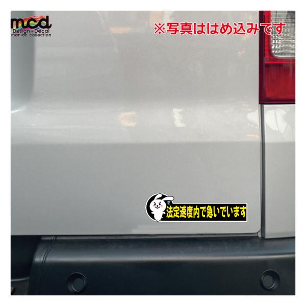 (反射)おもしろ ステッカー 法定速度内で急いでいます 黒 ウサギ 交通安全 安全運転 あおり防止 かわいい トラック 車 オートバイ