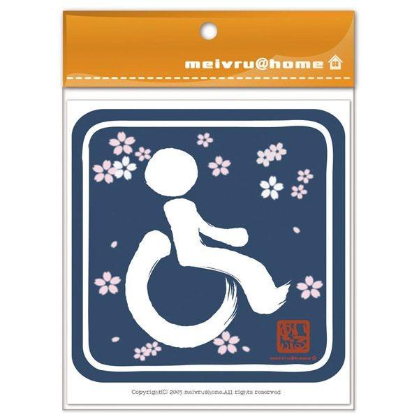 メール便送料無料 車椅子マーク マグネット 身障者 ステッカー 車いす 車イス 福祉車両(マグネットタイプ/車椅子 和柄 紺)
