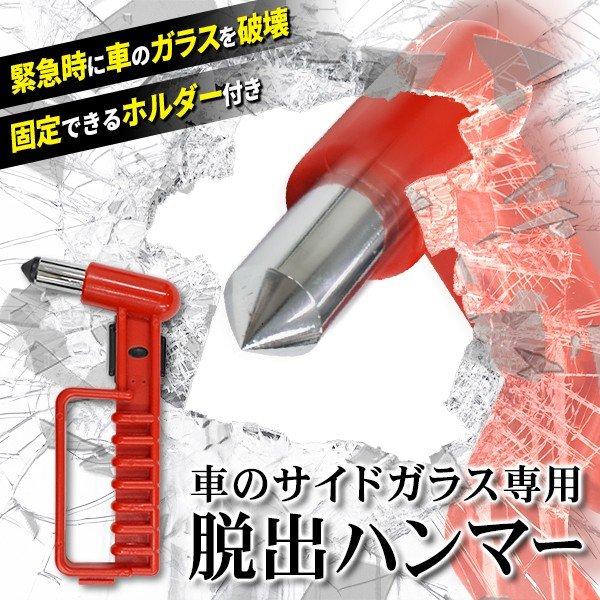レスキューハンマー 車 緊急脱出 救出用 ガラス割り 収納ホルダー付 金槌 車載 豪雨 台風 浸水 災害 防災 カー用品 送料無料 3M◇ 脱出ハンマー赤
