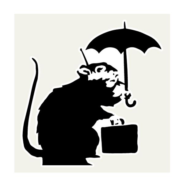 ラット&アンブレラ ネズミ傘 ステッカー 48×50ミリ シール Banksy バンクシー スマホ用 車用ステッカー パソコン用 スーツケース用