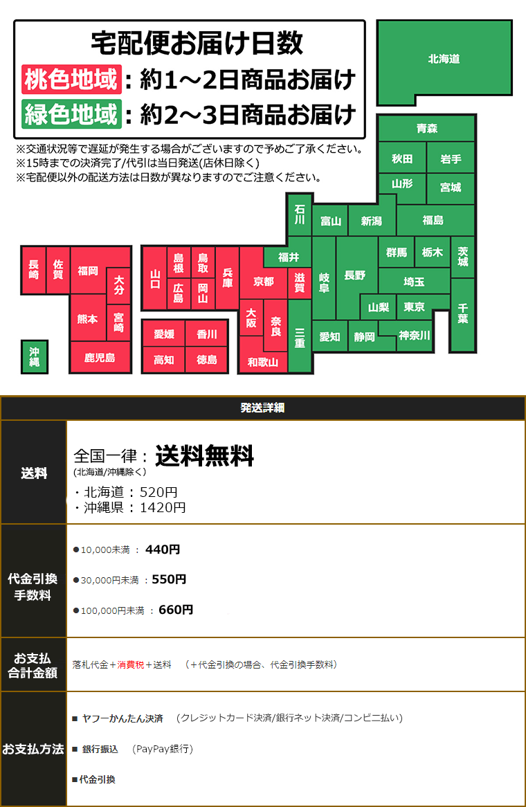 | ご注意事項 | ■一部のお車は加工が必要な場合がございます。専門業者にて加工や施工をお願い致します。 ■取り付けに関してのサポートは行っておりませんので、自信のない方は専門業者にてお取り付けください。 ■取り付けに関する工賃等につきましてはお客様ご負担となります。いかなる場合でも工賃等の保証はございません。 ■基本的に在庫はございますが注文状況により在庫切れとなる場合がありますのでお急ぎの方は質問欄よりお問い合わせください。 ■初期不良の場合、商品到着後7日間以内に限りご対応とさせていただきますのでお早目に動作確認の方よろしくお願い致します。 ■取り付けは自己責任でお願いします。取り付けの際の破損等も当方では責任を負いかねます。 ■万が一本製品により生じた事故・障害・損害等は、弊社では一切の責任を負えませんのであらかじめご了承下さい。 ■ご入札の際は、すべての注意事項をお読みになり、ご同意の上ご入札下さいますようお願い申し上げます。 |