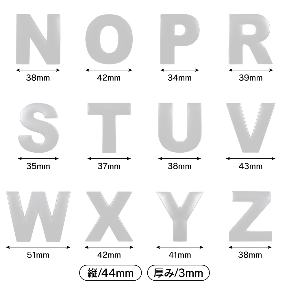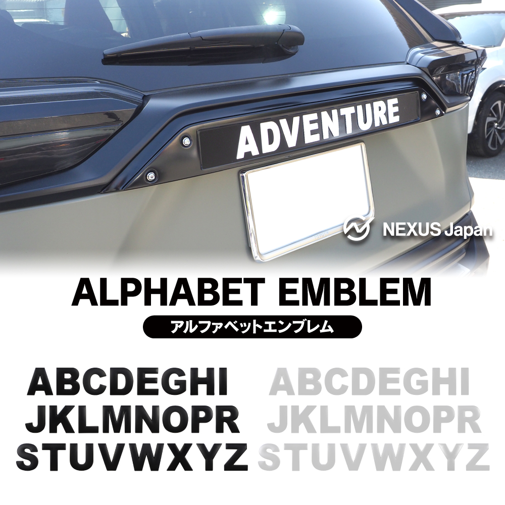 一文字ずつのお取り付けなので、幅広い車種、箇所に設置可能で、自分好みにカスタムしやすいアイテムです。