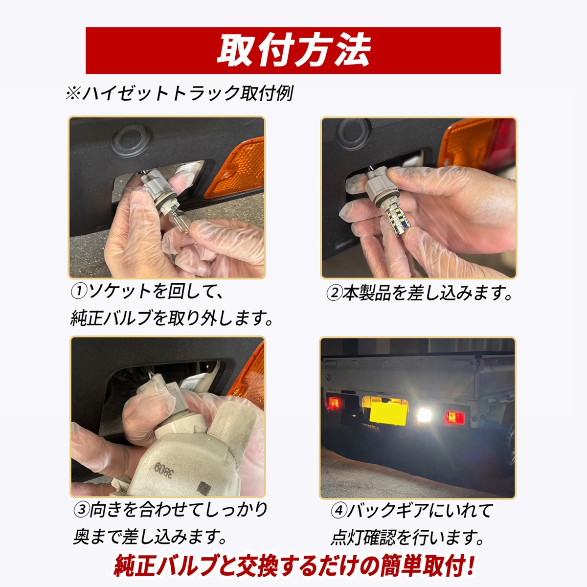 純正バルブと交換するだけで取り付けることができます。