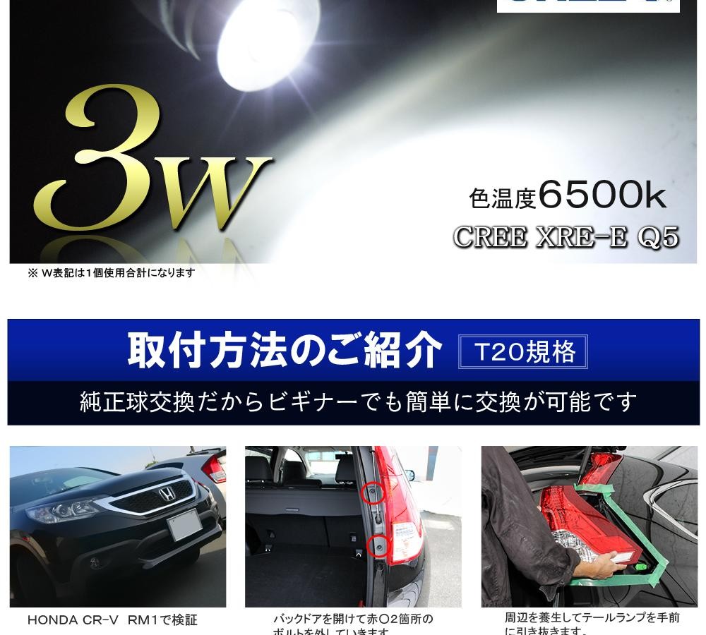 プリウス 30 30プリウス LED バックランプ T20 バックライト ホワイト 爆光 3W 車検対応 ウェッジ球 2個 外装 カスタム パーツ